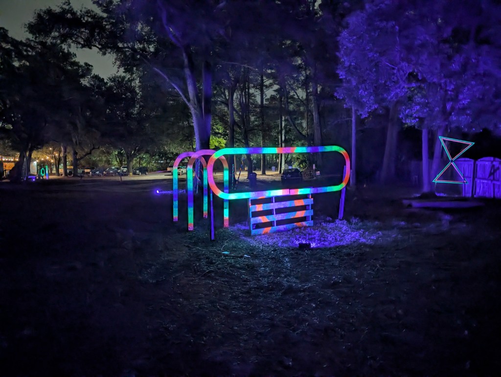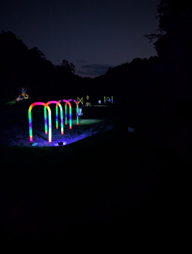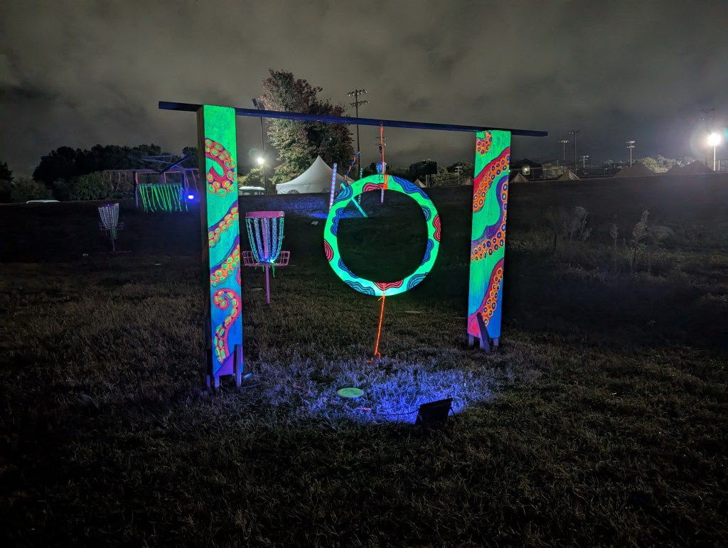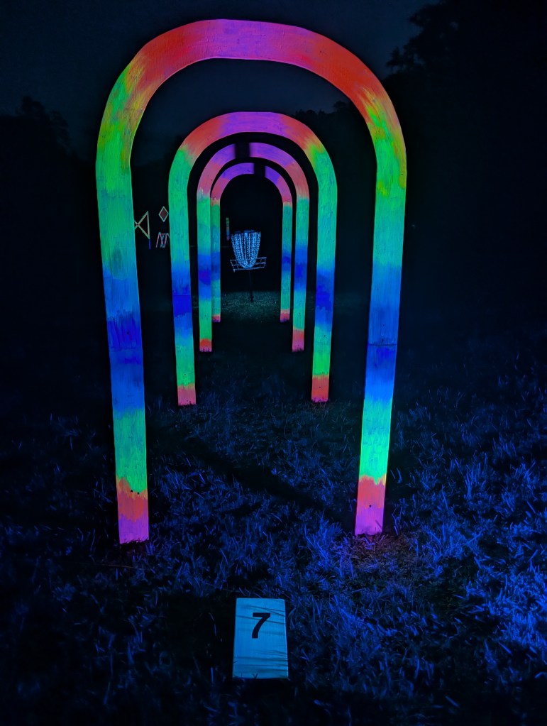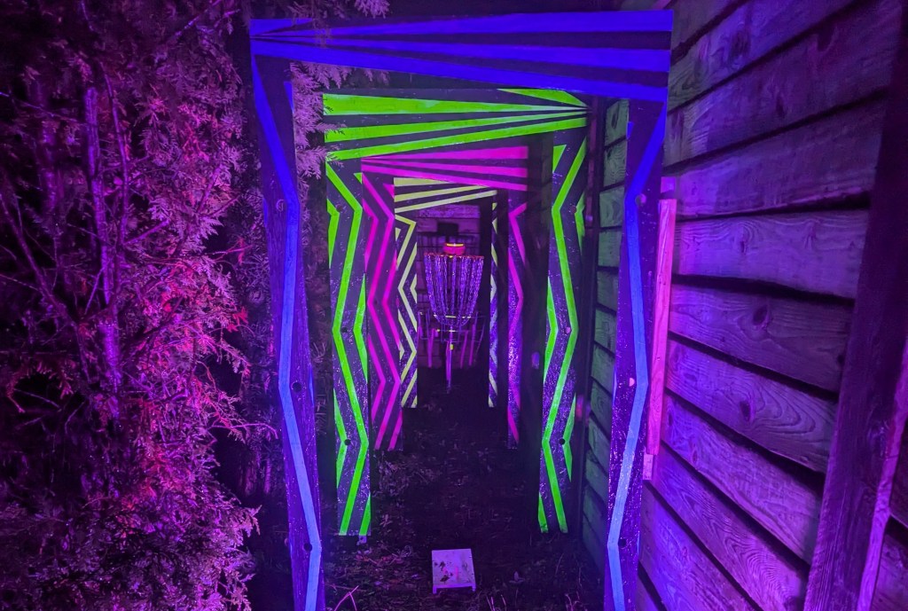 Check out our always changing, traveling 9 hole disc golf putting course. Neon glow by day and blacklit at night. Our blend of art, challenge, and the outdoors.